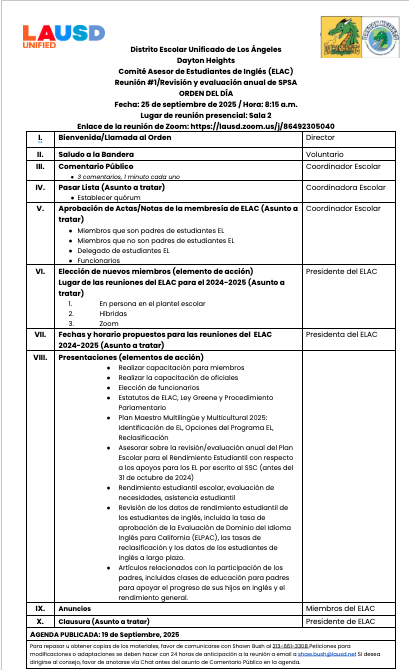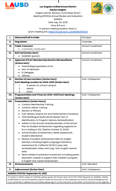 ELAC and SSC Meetings: Thursday at 8:15 a.m. and 2:30 p.m.